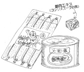 不人気でアブれた鯨肉の在庫に頭を悩ませる業界を救ったのが、ハム・ソーセージなどの練製品の加工技術の開発でした。いわゆる魚肉ソーセージは、原料の半分を占める鯨肉にマグロの肉を混ぜ込み、香辛料をきかせることで本物のソーセージを模したものです。大手水産会社はオートメーション工場による生産体制を整え、魚肉ソーセージの量産・普及を図りました。後に原料は白身の魚に取って代わられますが、多くの日本人はそれと知らずに鯨肉を口にしていたわけです。ほかにも、コンソメスープの原料にするなど需要開拓のために〝苦肉〟の策が試みられました。